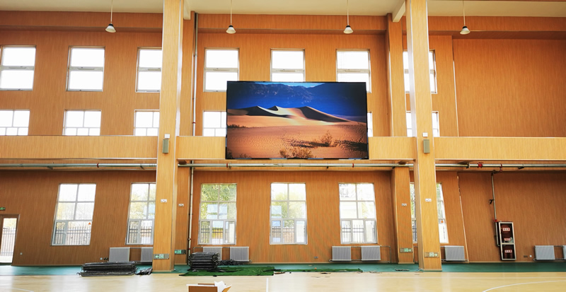 本案例中,維康國(guó)際為格爾木市某室內(nèi)籃球場(chǎng)提供一套LED大屏,采用全彩P2.5系列,大屏幕面積約20平方,顯示清晰、色彩鮮艷。